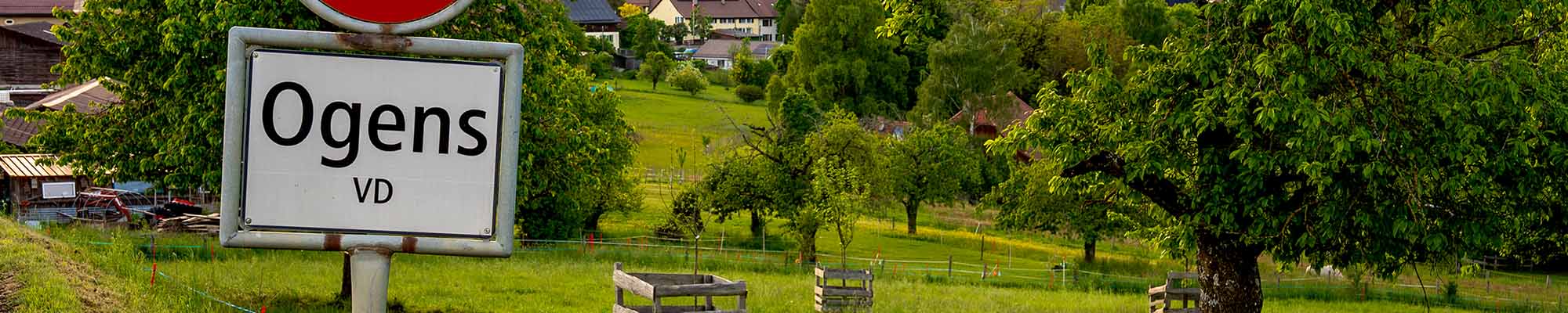 La commune d’Ogens est sise à l’extrémité Nord du district du Gros-de-Vaud, lequel est constitué de 44 communes. Notre village, au caractère campagnard, se situe sur un plateau dominant la rive droite de la Menthue et la rive gauche de son affluent l’Augine, sur l’axe Echallens - Payerne et légèrement en retrait sur l’axe Yverdon-les-Bains - Moudon.